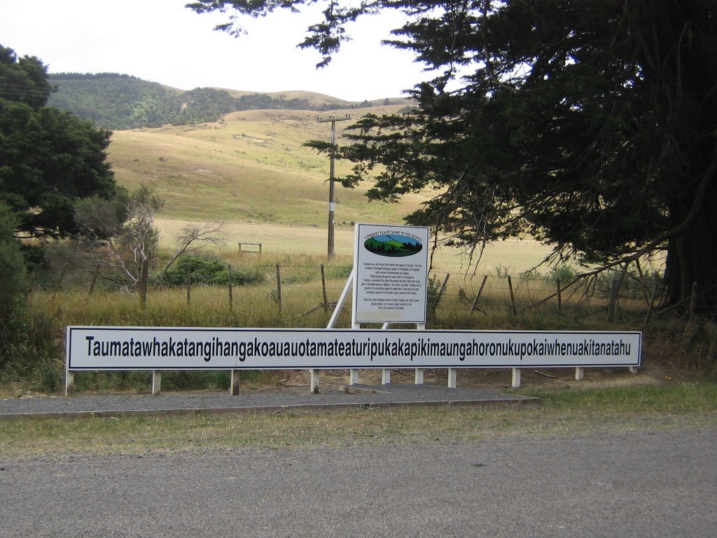Ni me atrevo a pronunciar tal cosa. Se trata del topónimo de una colina situada en la Isla Norte de Nueva Zelanda. El lugar, a poco más de 300 metros sobre el nivel del mar es célebre precisamente por su topónimo de 85 letras. Tan complejo término, en lengua maorí, procede de una leyenda local y viene a traducirse como: «La cima donde Tamatea, el hombre de grandes rodillas, el escalador de montañas, el devorador de tierra, el viajero incansable, tocó su flauta a un ser querido». Aunque hay variantes, todas ellas son igualmente complejas. Quien visite el lugar, no tendrá duda de que ha llegado a su destino cuando contemple el curioso “cartelillo” que aparece allí.
